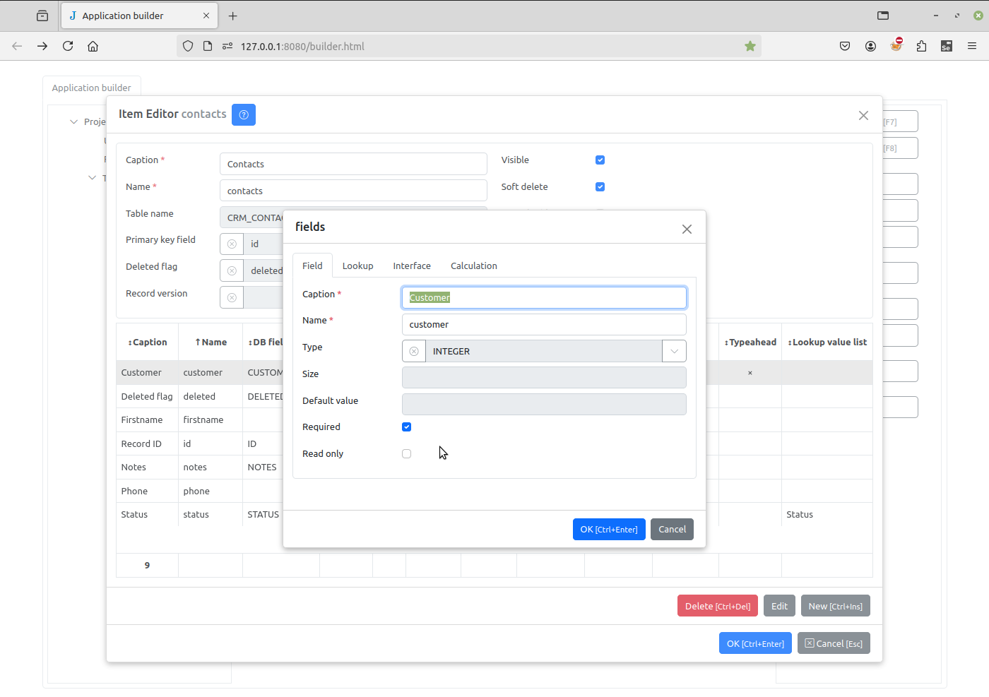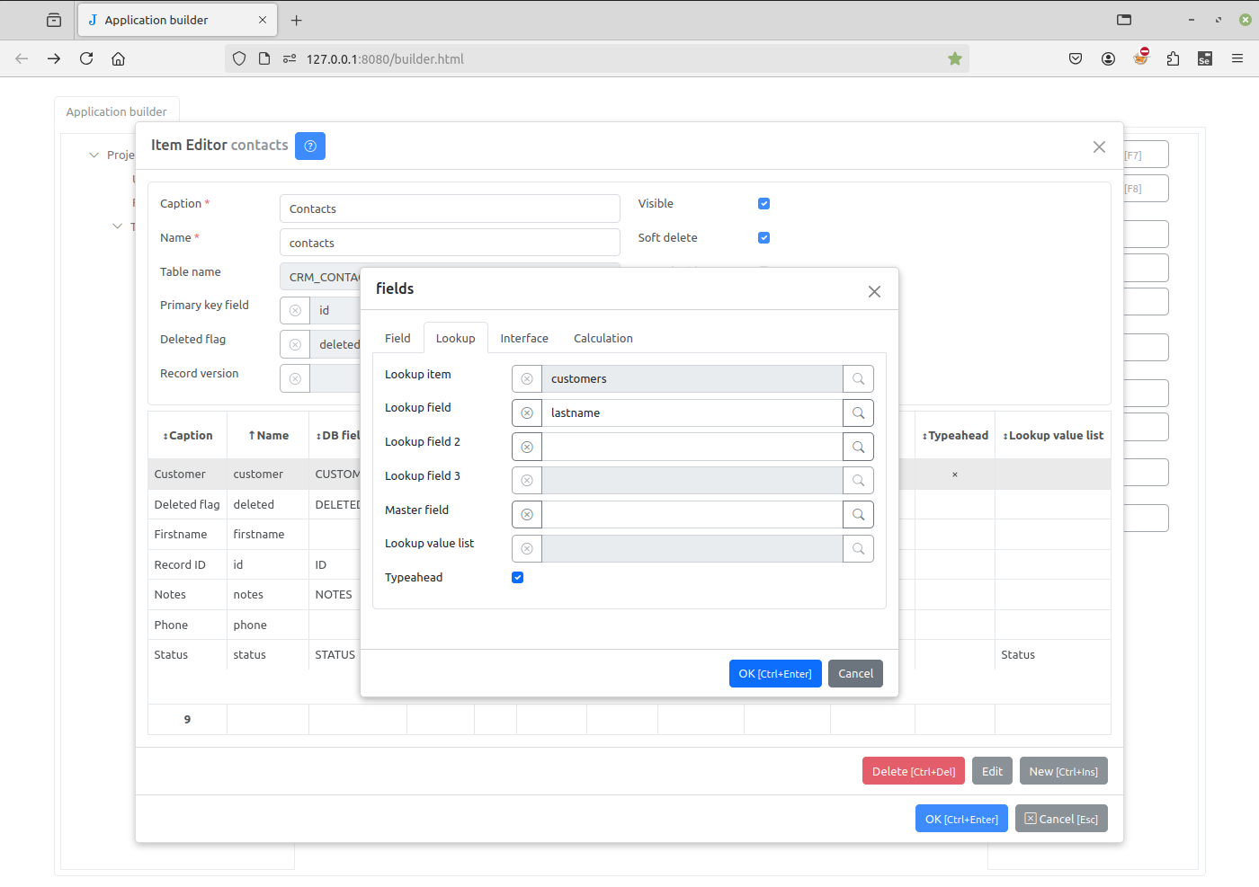 Finally, before saving, open the “Customer” field we created earlier, and set the Required attribute (in the “Field” tab) and the Typeahead attribute (in the “Lookup” tab). When the Typeahead is checked, autocompletion/typeahead is enabled for the lookup field.