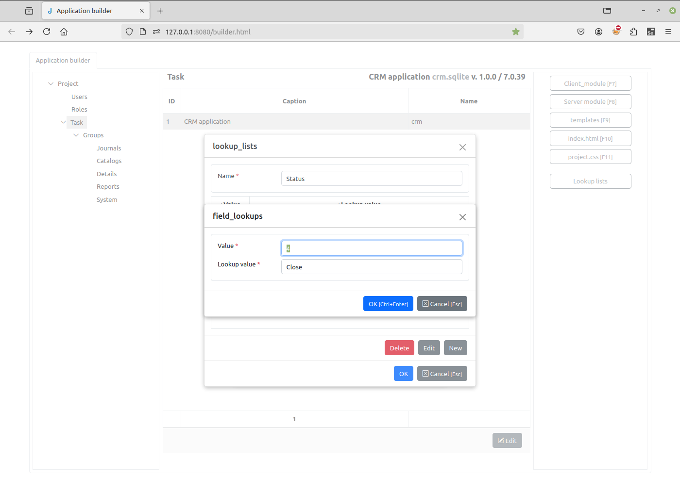 Select the “Task” node in the project tree and click the Lookup lists button.