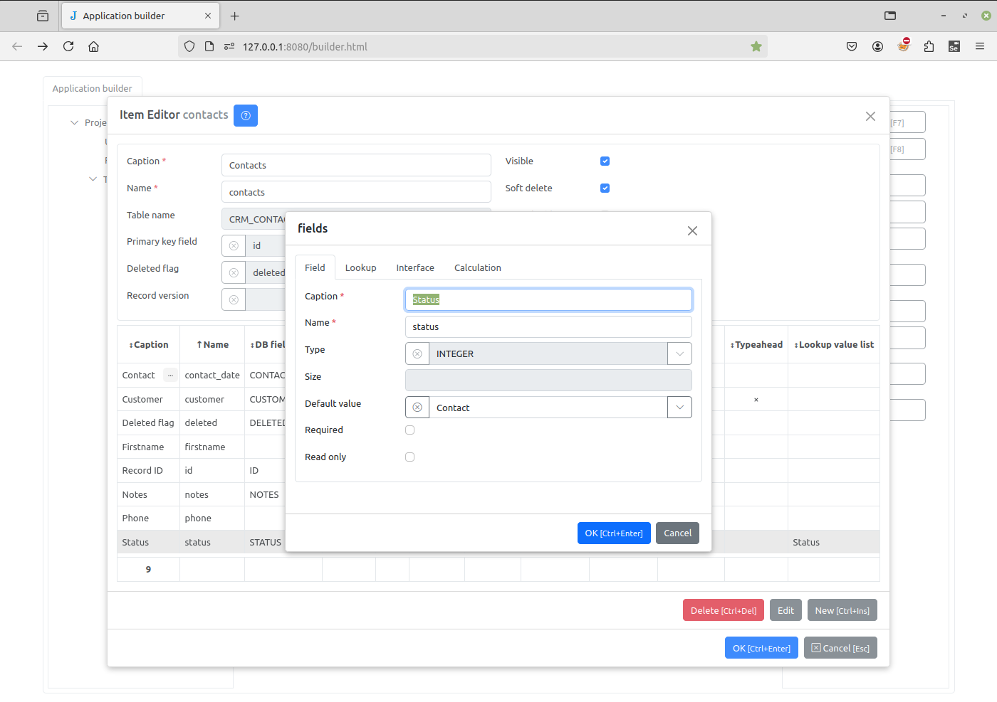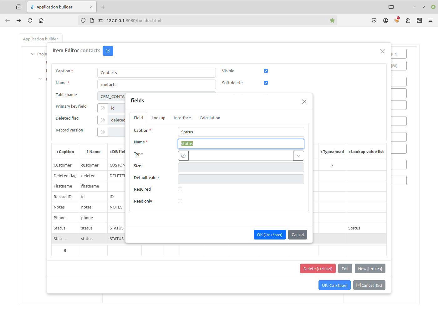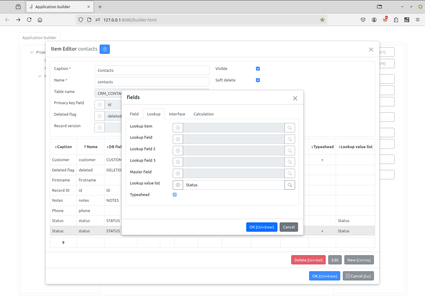 Save the Lookup Lists with the OK button, then edit the “Contacts” journal to add the new “Status” field.