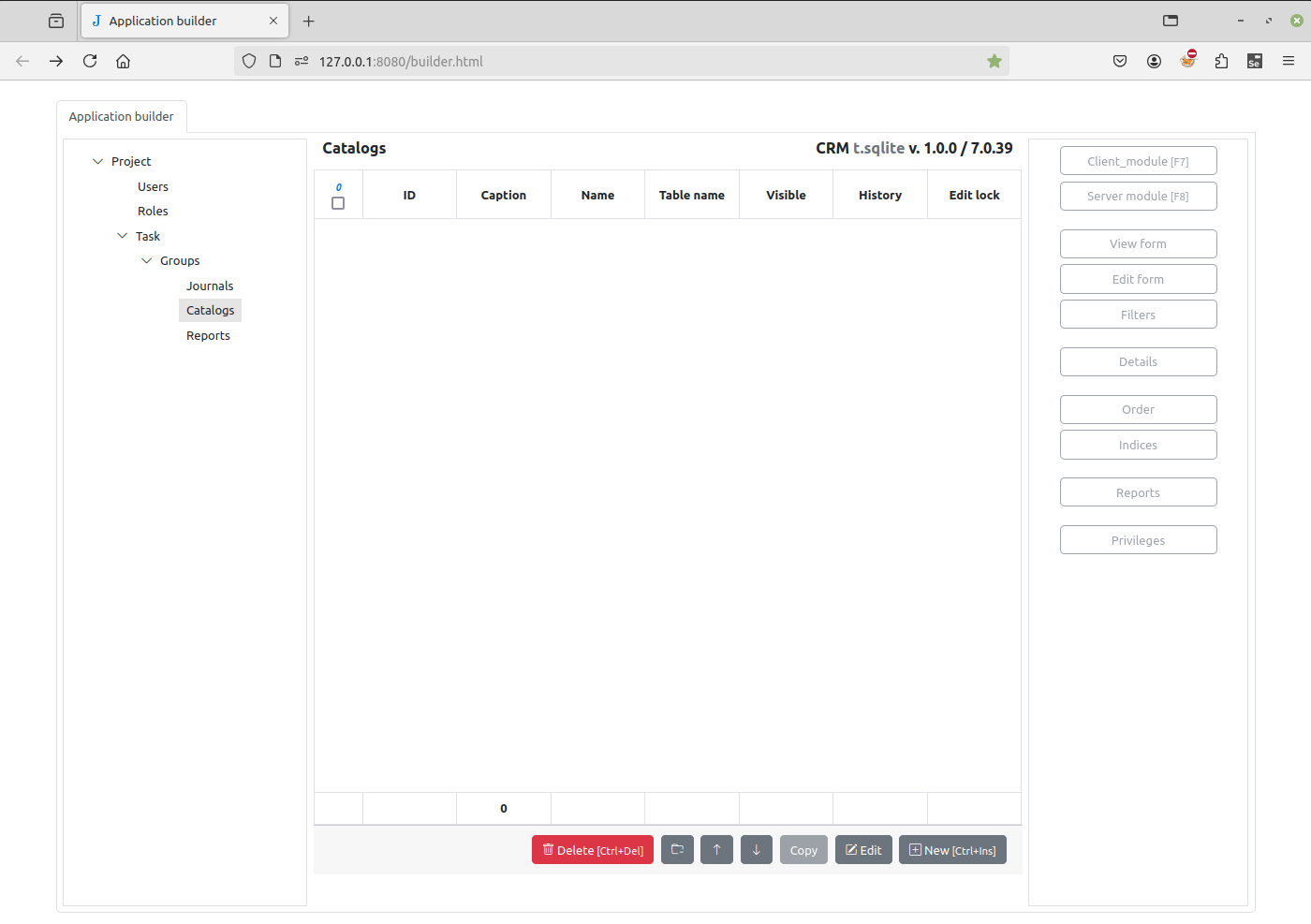 To do this, select the “Catalogs” group in the project tree and click the New button on the bottom right corner of the page