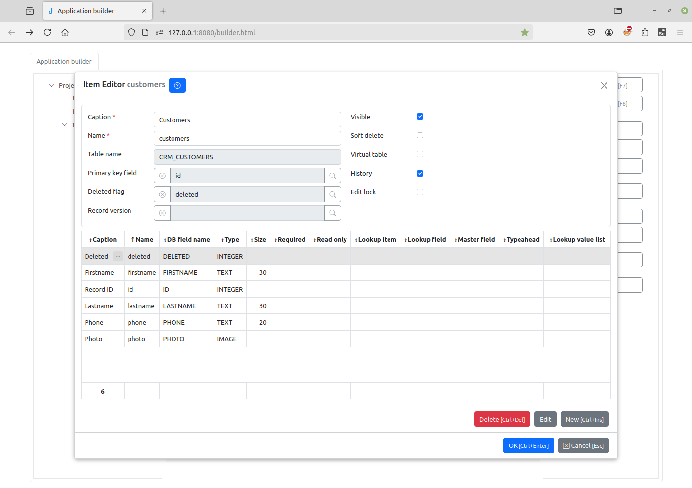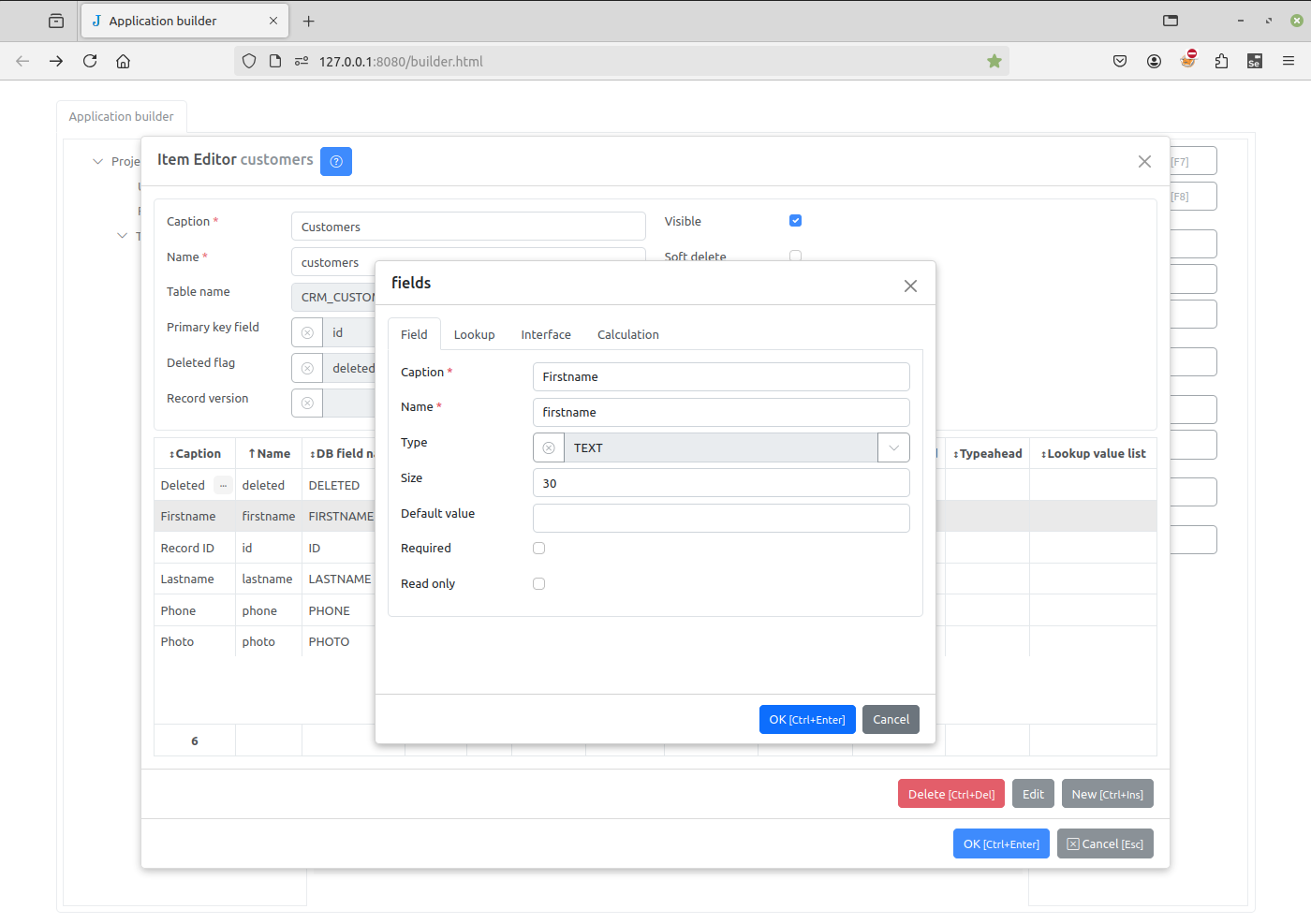 Similarly, add the “Lastname” and “Phone” fields. When adding the “Lastname” field, check the Required attribute. This requires that the field is set when creating a new item.