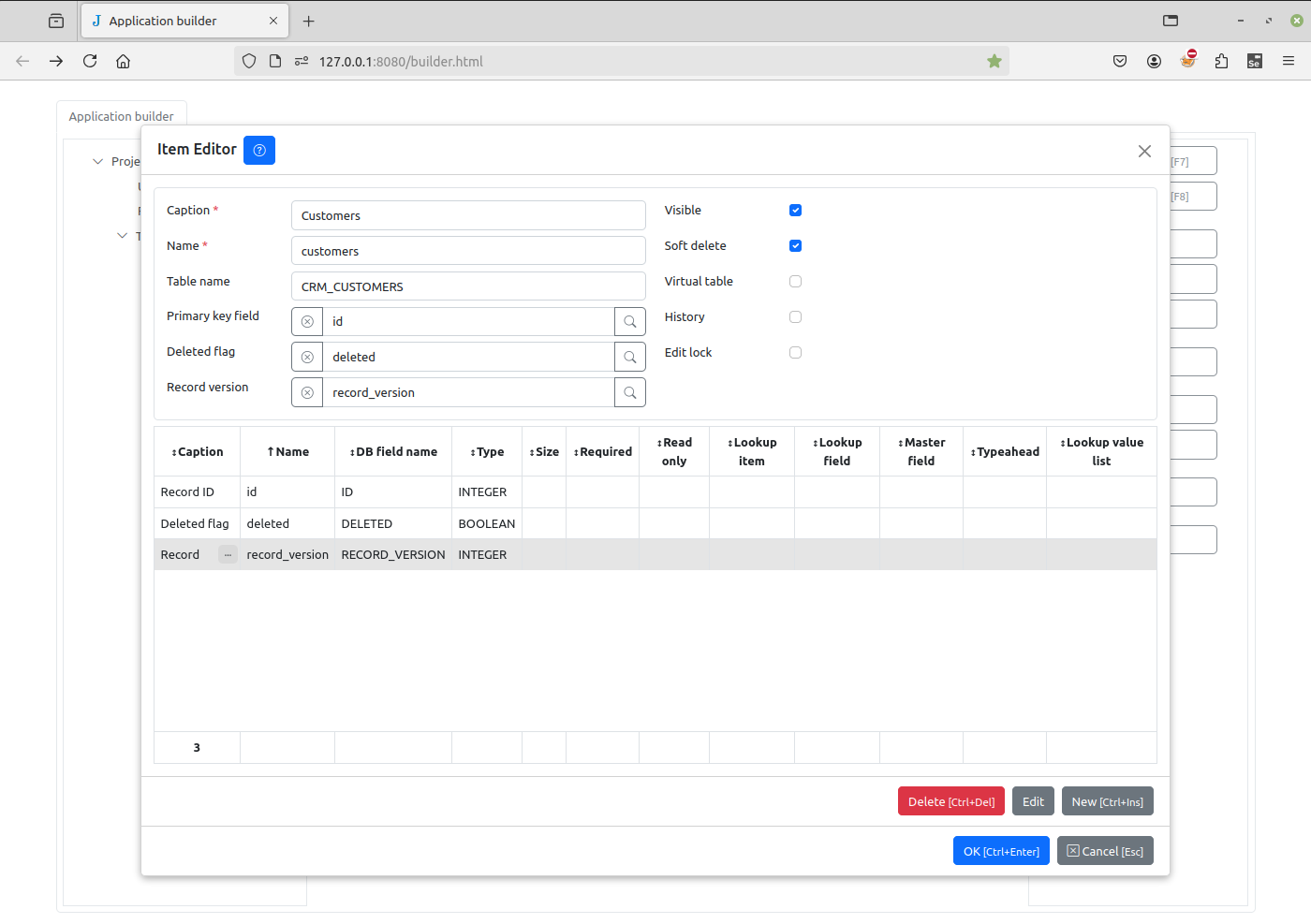 builder created the CRM_CUSTOMERS table in the crm.sqlite database: