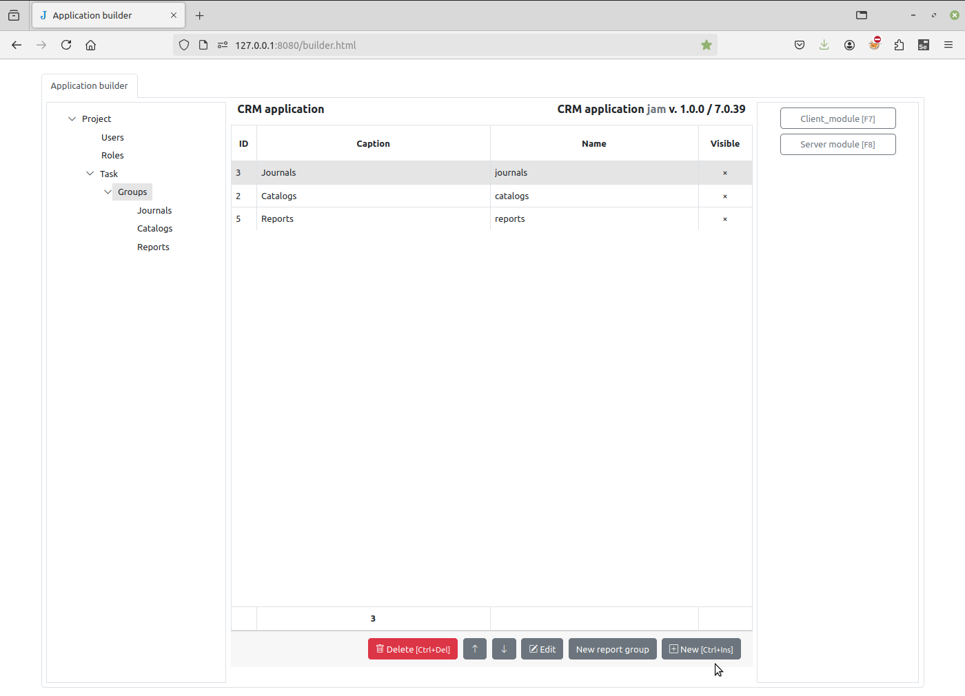 Let’s select the “Task/Groups” item in the project tree and click the New button at the bottom right corner of the page: