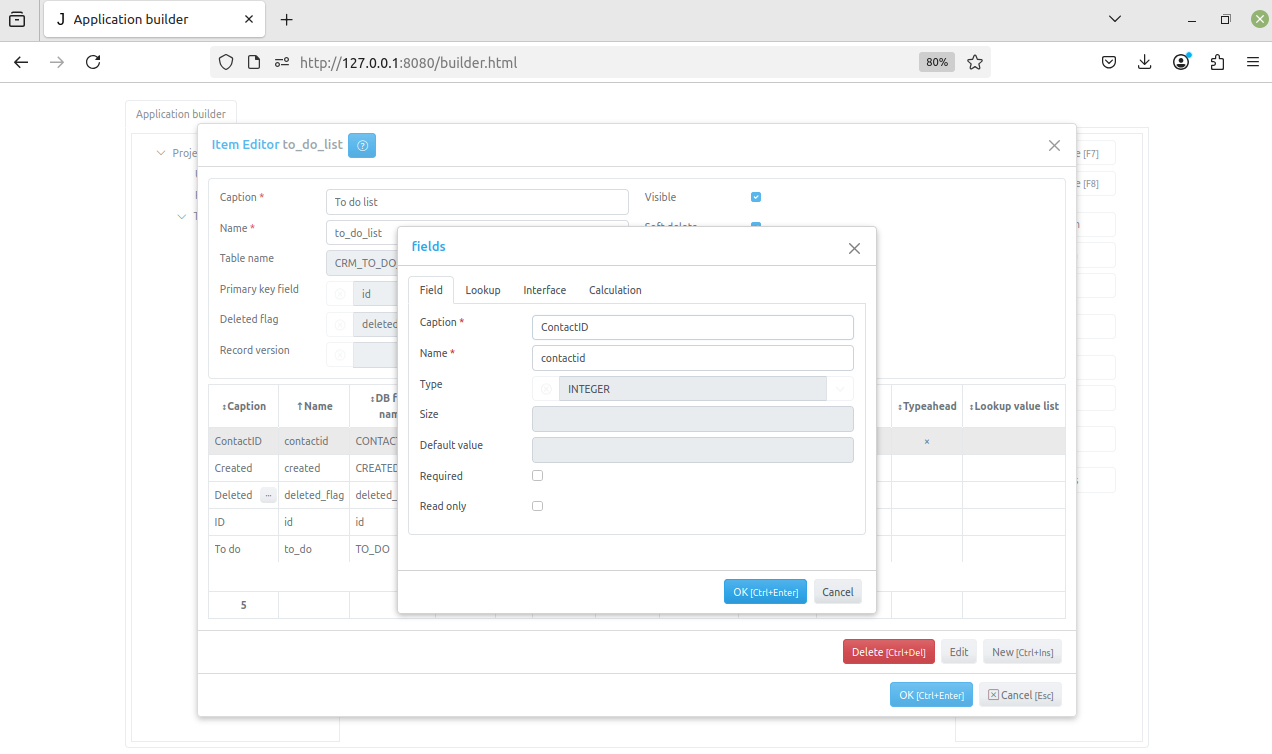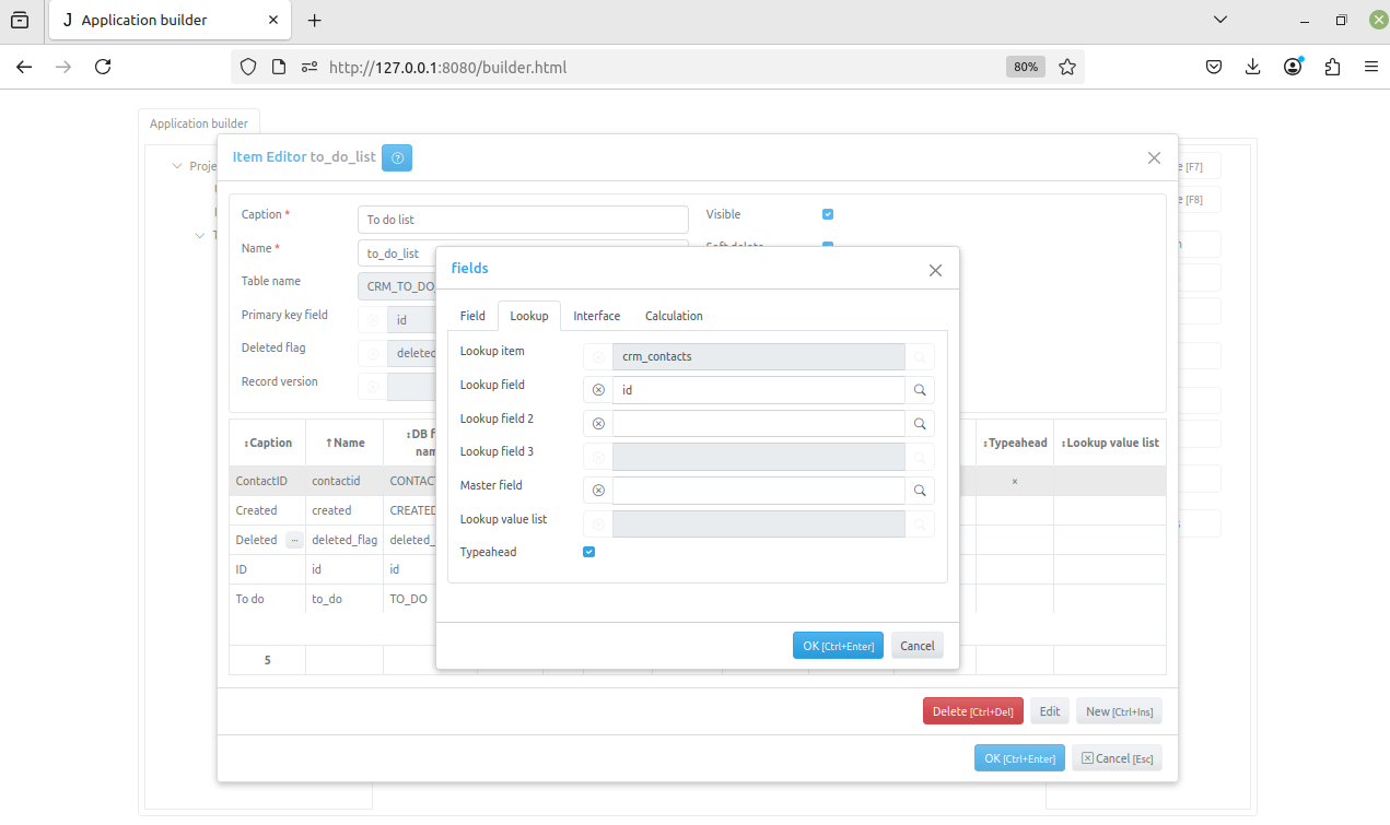 The most important step now is to create the field that “links” the Detail to its Master. This is a key difference from Jam.py v5, where Detail records were handled as a legacy feature.