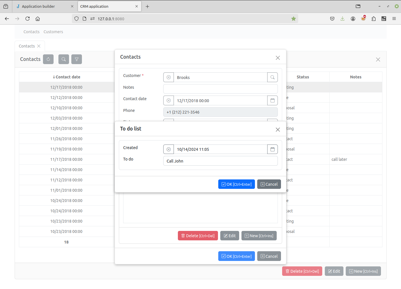 Let’s update the project page and dblclick on the contact. Now we can add items to the to-do list of the contact.