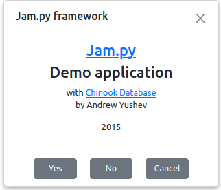 {title: 'Jam.py framework', margin: 0, text_center: true, buttons: {"Yes": undefined, "No": undefined, "Cancel": undefined},